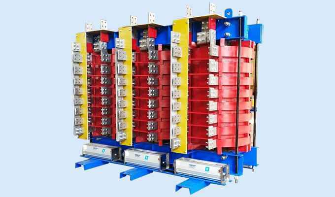 矿热炉变压器的负载连续、平稳,阻抗电压低,调压级数较多,级差较小,过载能力强,可分为有载、无励磁调压两种。一般前几级恒容量输出,后几级恒电流输出。